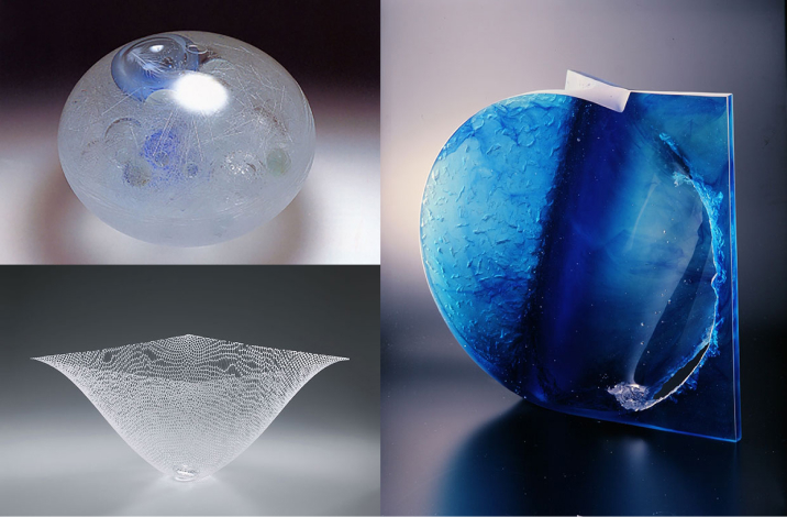 右.第1回大賞「月齢」西川慎 左上.第1回準大賞「Aqua#3」 池本美和 左下.第8回大賞「Weaving Glass –interface– vol.3」佐藤静恵