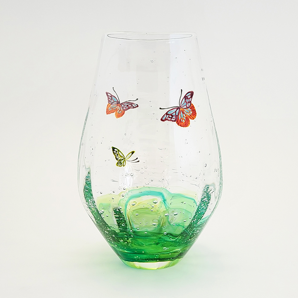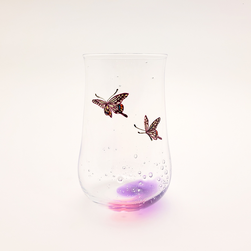 優雅に羽ばたくアゲハチョウを描いたグラスです。 食卓に華やかな彩りを添え...