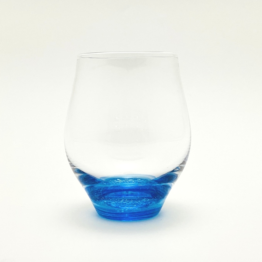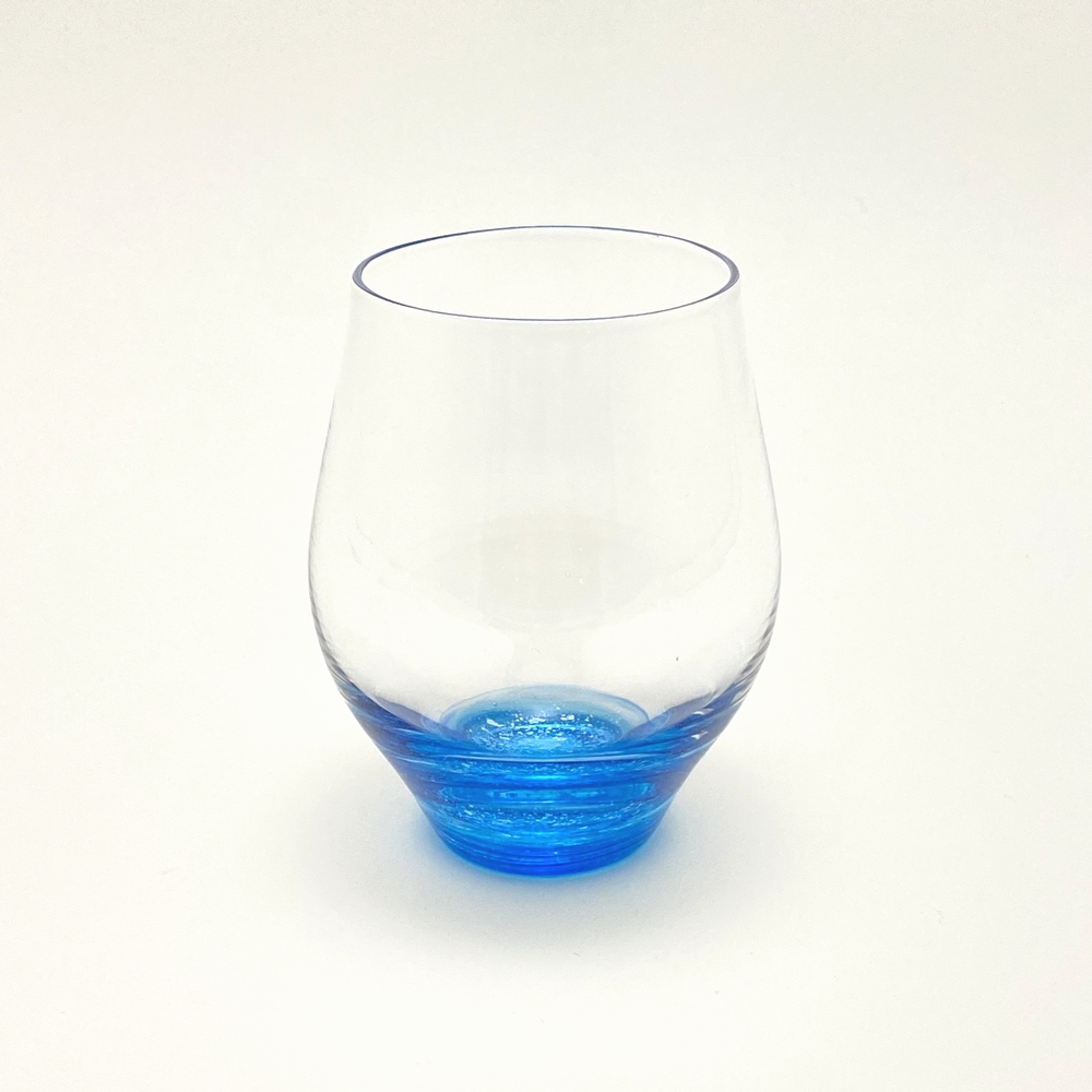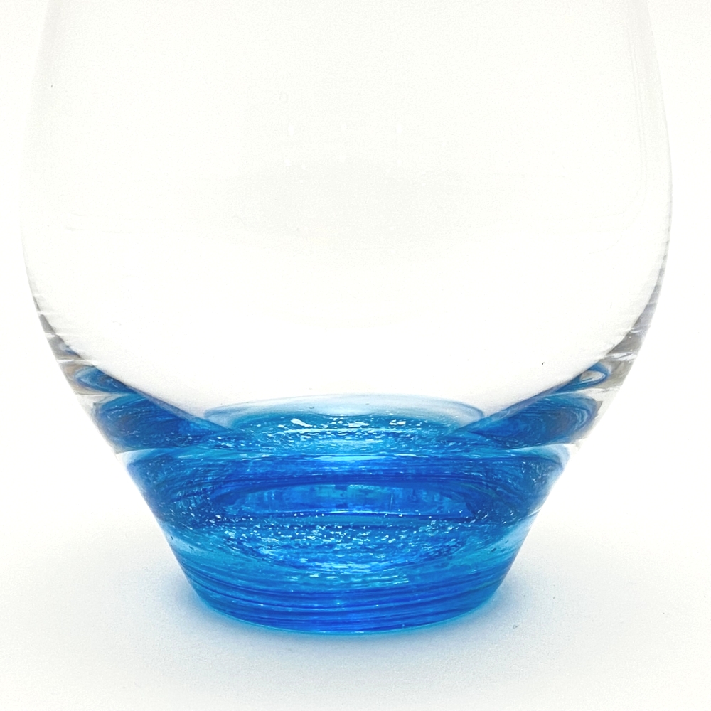 グラスの底の模様は、青色ガラスの中に銀箔を散りばめております。