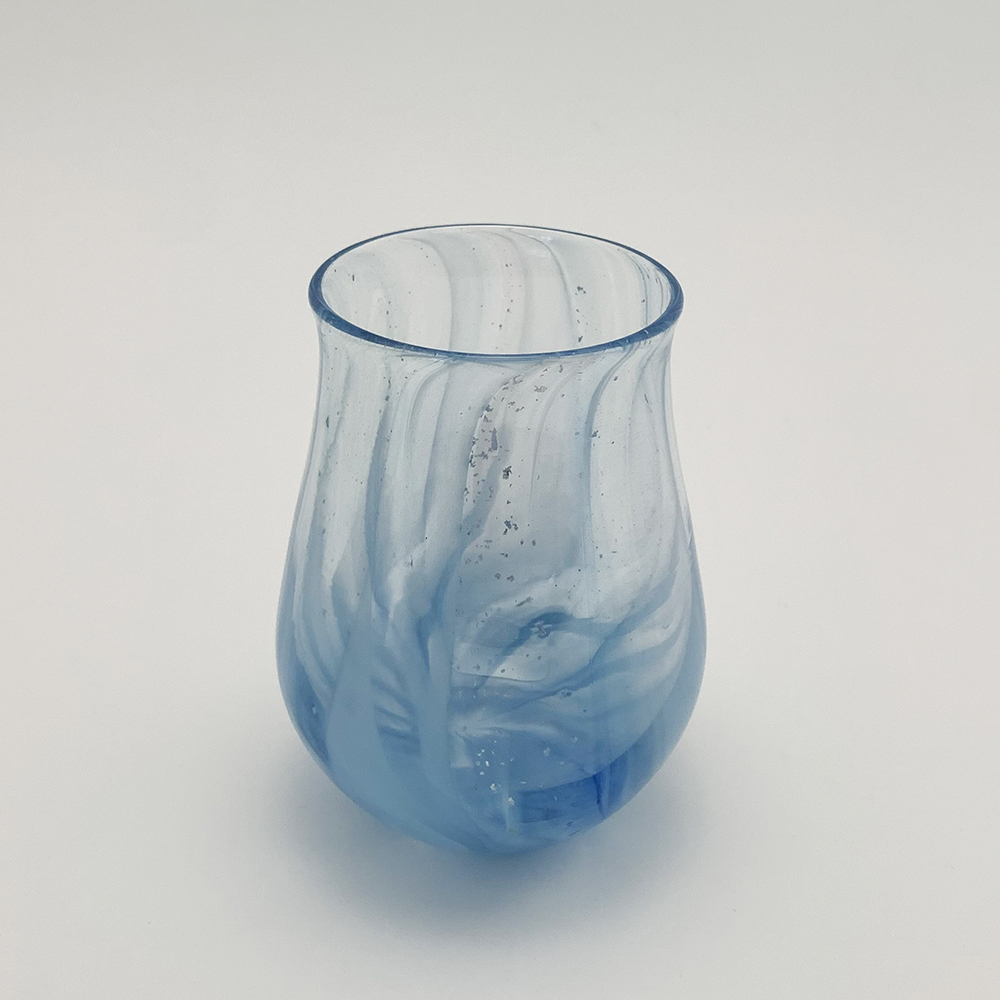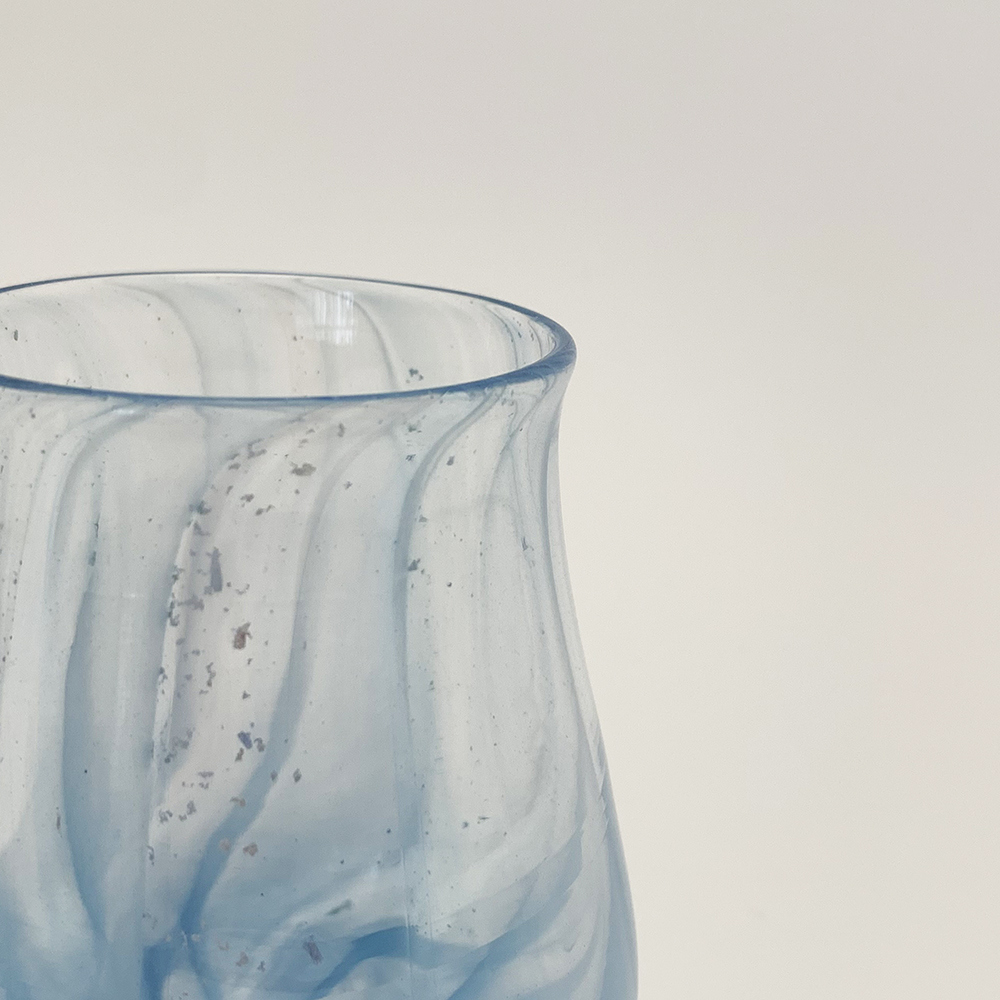 雨上がりの雨粒のきらめきをイメージしたグラスです。柔らかな色の中に銀澄のきらめく模様が入っています。