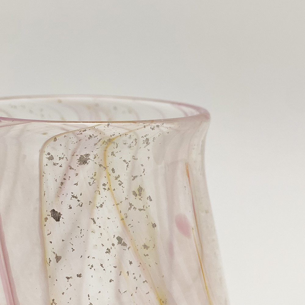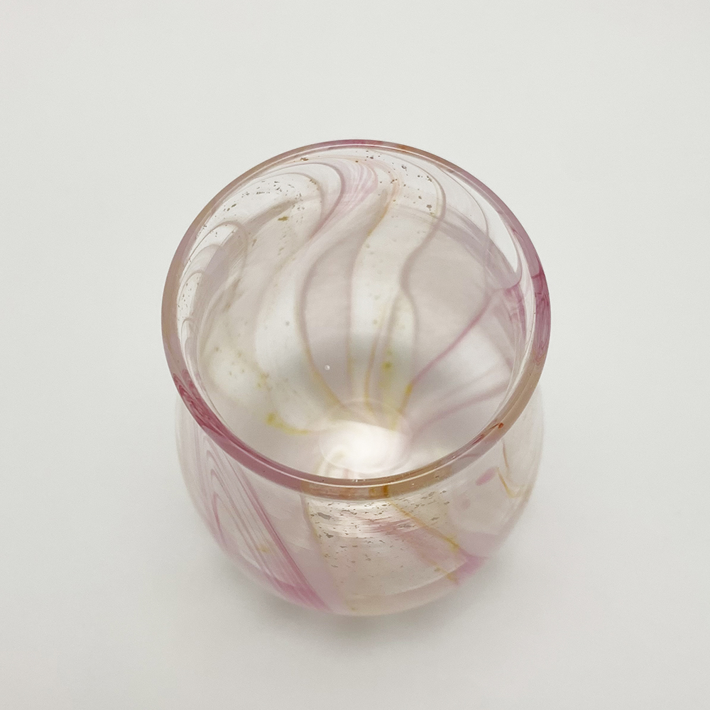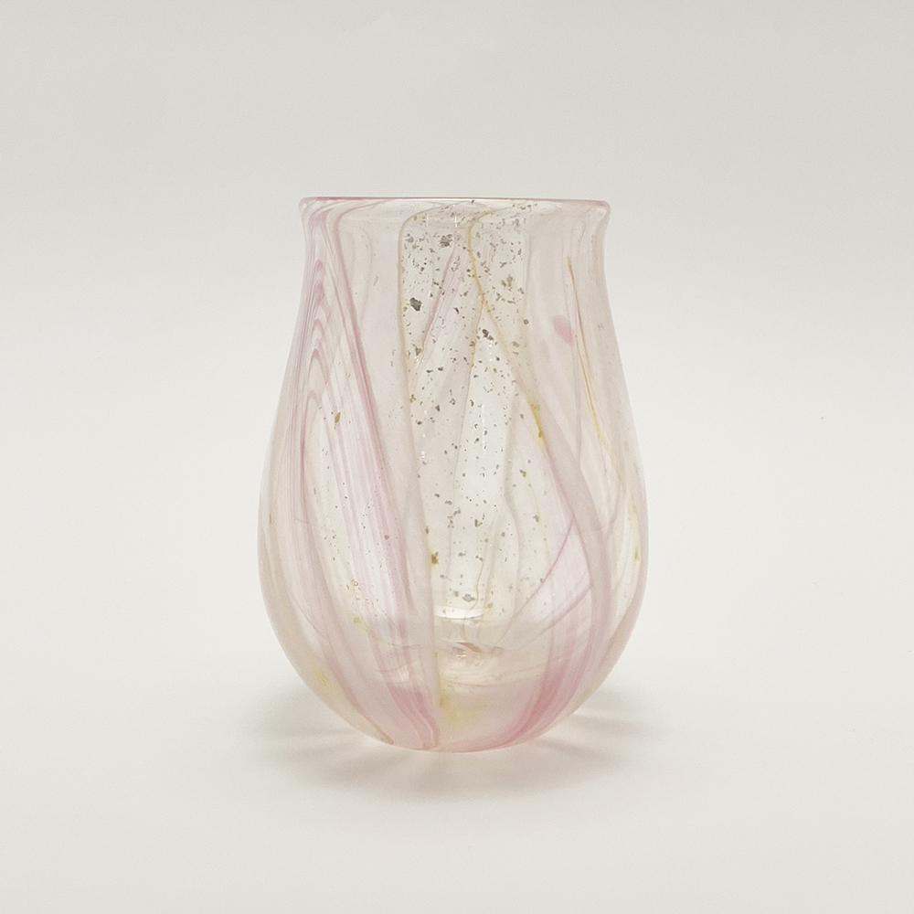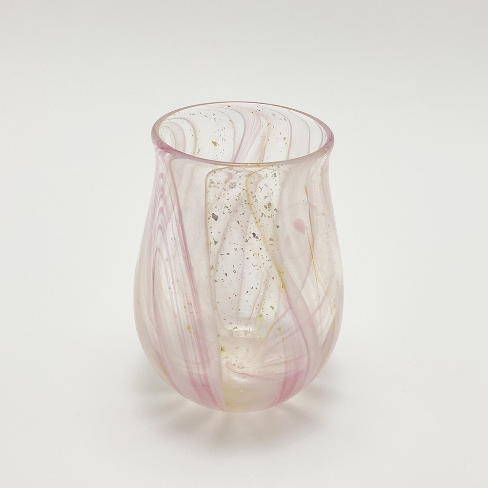 雨上がりの雨粒のきらめきをイメージしたグラスです。柔らかな色の中に銀澄のきらめく模様が入っています。